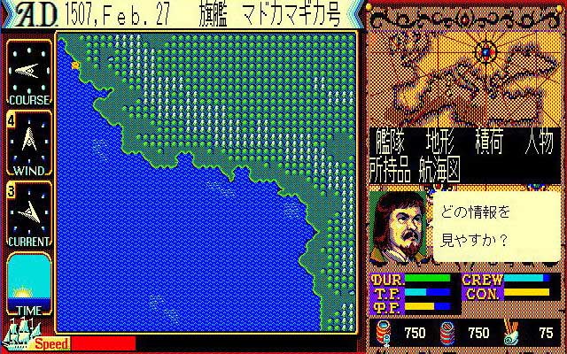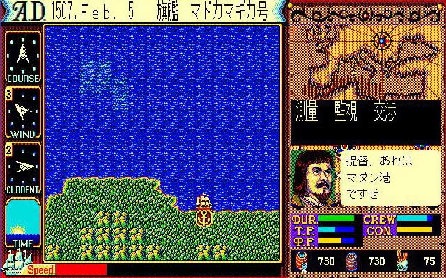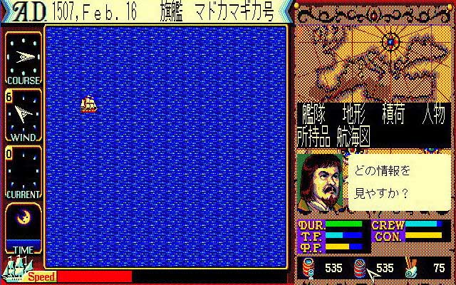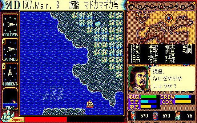 潮流が陸地に向かって激しい流れを作り、かつ年間の半分が無風状態の、入り込んだら抜け出すのはほぼ不可能という船の墓場・サルガッソー。ここに入り込んでリセットボタンを押したプレイヤーは数知れず・・・もちろんこんな危険な海域には近付かずに、南米大陸西岸をまっすぐ南下して行きます。