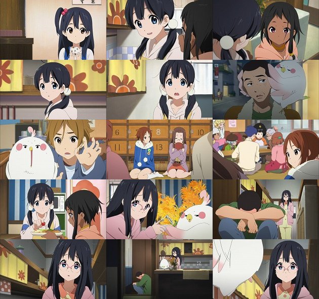たまこが幸せになる事が一番・・・と糸電話で告げるもち蔵。いつの間にか自分の事が周囲に勝手に決められて行くようで、やるせない気持ちに耐え切れず地団駄踏んで暴れるたまこが可愛い。深夜なのでご近所迷惑にならないように静かにそれを行う点も含めてw