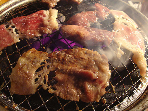 花見を終えた後は、去年開拓した上野駅前のホルモン焼き店『炎』で昼食。レバーにシマ腸、そしてマル腸のホルモン3点盛りセット(ご飯・サラダ・ナムルとキムチ・わかめスープ・ウーロン茶が付いて880円!)を1年ぶりに食します。炭火で焼くホルモンはやっぱうめぇ♪特にマル腸は美味なのに提供してくれる店が少ないので、これを食いに来たと言っても過言ではありません。