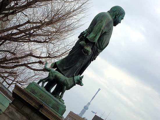 公園口から上野のお山を巡回すると、ゴール地点が西郷隆盛像となります。この日は西郷さんとスカイツリーと飛行船という珍しい組み合わせの写真が撮れました。あぁ・・・それにしても晴れていたらなぁ。今年はちょっとだけ残念な上野の桜見物でした。