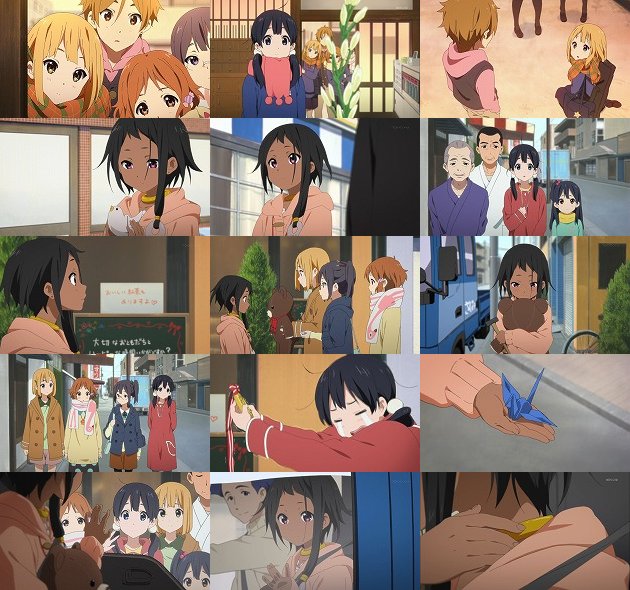 空港へ向かう途上、デラがいない事に気付く王子とチョイ・・・やはり大晦日まで残るつもりのデラですが、そんなデラに対してクリスマスの七面鳥の代わりにする事を考えているかんな&たまこ恐るべしw そして大晦日、鏡餅を求めるお客に大わらわのたまや。そんな中、たまこやあんこには何も言わず、豆大にだけこの1年が楽しかった事を告げ、1枚の羽だけ残してふと消えるようにたまやから消えたデラ・・・こいつ、いつからこんなに格好良くなったんだ?つーか俺、この作品で一番好きなキャラってたまこでもあんこでも史織でもなく、実はデラだったのかもしれない・・・。 たまやを出たデラは、ふと王子の匂いがする花に誘われて花屋に寄り、そこで花の傍らで眠ってしまいます。そんなデラに気付かずに一緒にダンボールに梱包してしまう花屋のオカマ。そしてそこにたまこの誕生日祝いに花を買い求めに来たもち蔵が現れ・・・ たまこにダンボールいっぱいの花をプレゼントするもち蔵。喜んだたまこがダンボールを開けると、そこには花に包まれて眠るデラの姿がw たった数時間で戻って来たデラに大喜びのたまこ、そしてたまことの再会にはしゃぐデラ。そんなデラを通信越しに叱り飛ばすチョイ・・・騒がしく、賑やかな、それでいて自然に笑みが溢れる物語の締め。悪人も影も毒もない、善人だけが紡ぐ物語の約束されたハッピーエンドです。