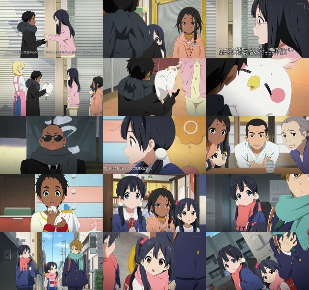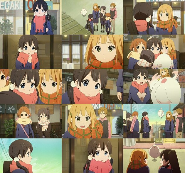学校でもみどりたちに王子の事で問い質されるたまこ。そういや今更気付いたけど、史織ってかんなより背が低いのね。 ここでも「たまこの気持ちが一番大事」と諭され、やや困惑するたまこ。そんなたまこを癒すのは、無事に戻って来たメダルでした・・・って、わざわざ学校に持ってくんなよw 商店街の面々は南の国から来た王子様に興味津々。うさ湯で質問攻めにして、マネージャー役のチョイを困らせます。でもまぁ国からここまでどれくらい時間が掛かるのかは俺も気になるな。 バトン部の練習でも全然集中出来ていないたまこは失敗の連続。そんなたまこを心配するみどりたちは、帰路でもたまこに励ましの言葉を掛け続け・・・それが逆にプレッシャーのように感じるたまこです。 商店街に戻ったたまこは、殆どの店がシャッターを閉めている事に急に不安な気持ちを掻き立てられます(うさ湯で王子と一緒にいるからね)。いつものうさぎ山商店街じゃない事がたまらなく嫌なたまこは走って家に帰り、祖父とあんこと父親の顔を見て安堵するのでした。