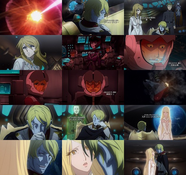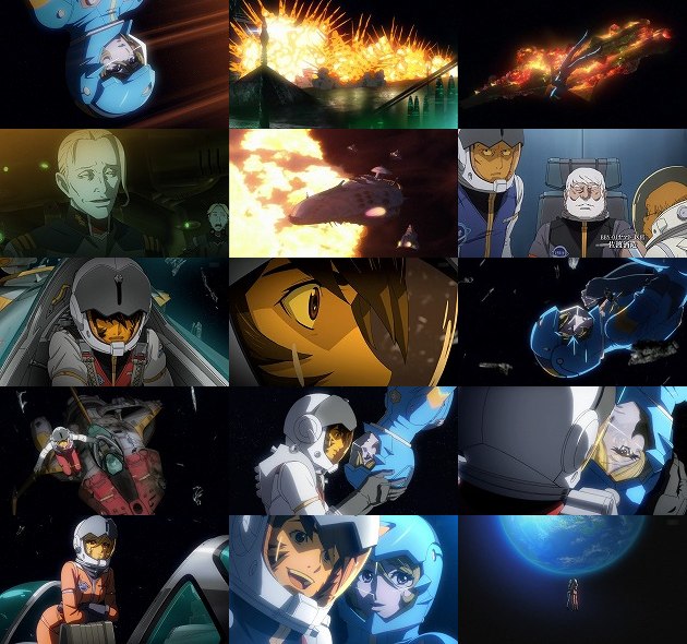 大爆発を起こすデスラー砲、そして第二バレラス。その爆発がデウスーラU世に迫る直前に「ジャンプだ!」という声が聴こえたので、恐らくデスラーとデウスーラU世は無事なんでしょうな。 崩壊する第二バレラスを観て、ノランの嘘に気付いていた雪はその死に涙します。そしてこの爆発に親衛隊艦隊も巻き込まれ、ギムレーは初めて訪れる死の観念を述懐しながら旗艦もろとも消滅。つーか親衛隊艦隊が巻き込まれる程の爆発なのに、身一つの雪がどうやってあの位置まで逃げられたのか疑問は残りますw 第二バレラスの残骸の中、損傷したコスモゼロのコクピットで結局雪を救えなかった自分を責める古代。しかしその視界に漂う者の存在に気付いた古代はコクピットを飛び出し・・・この広い宇宙空間、しかも無数のデブリが漂う中から雪を見付け出す奇跡。アニメかよ!(アニメだよ) ドメル艦隊との戦い以来、久々の再会の2人。その前には青く輝くイスカンダルが大きく広がり・・・何と言う最終回!いや、これでもまだ残り3話もあるんだなw まぁまだコスモリバースシステムを地球に持ち帰ると言う「復路」が残されていますし。デスラーが生き残っている事はほぼ間違いありませんし、フラーケン艦長のUX-01、それに3,000隻の精鋭を率いるあのゲール君がまだ健在なのを忘れてはいけませんw 今回のサブタイ「たった一人の戦争」。これは一見、雪の事を指しているようにも思えますが、雪にはノランという協力者もいた事から、実は一人よがりの戦争を行っていたデスラーに対する皮肉であった事は想像に難くありませんね。