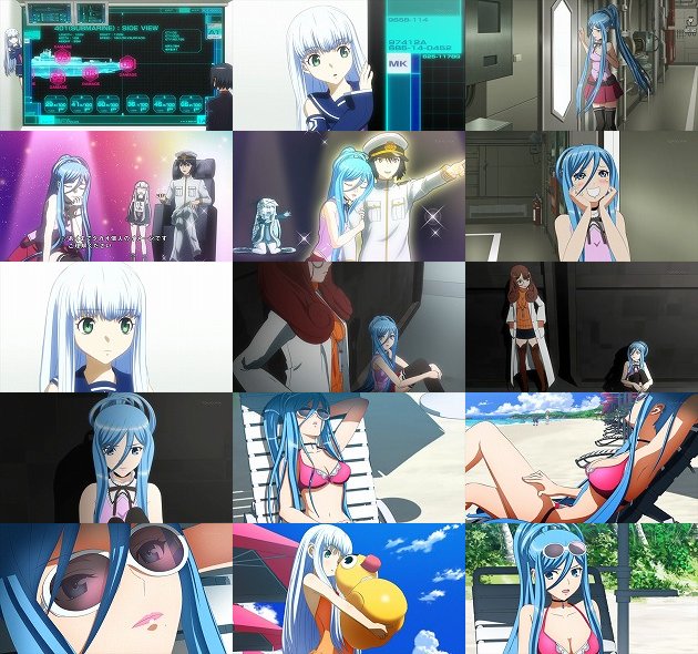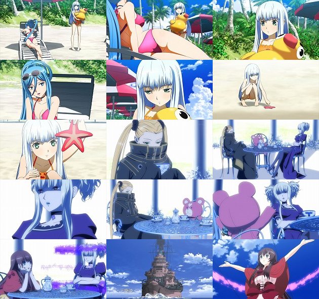 船体のダメージをスキャンして確認する群像。そんな群像とちょっとだけ良い雰囲気のイオナを見てぐぬぬ状態のタカオは、妄想の中で群像が自分の艦長に就任して、イオナが捨てられる姿を思い描き・・・でも群像本人が現れると恥ずかしがって逃亡と、どこまでも残念さんです。そんなタカオの想いにイオナは気付き始めている? イオナの存在の不思議さを語るヒュウガとタカオ。人類に与するイオナの存在は、霧にとって除去すべきガン細胞なのか、進化のための変化なのか・・・ 硫黄島内に作られた人工ビーチで、基地を放棄する前に最後のバカンスを満喫する面々。タカオさん、巨乳過ぎず貧乳でもなく、非常に良いプロポーションですなぁ。でも俺はフリル付きワンピースのイオナの水着姿に目が釘付けですが!