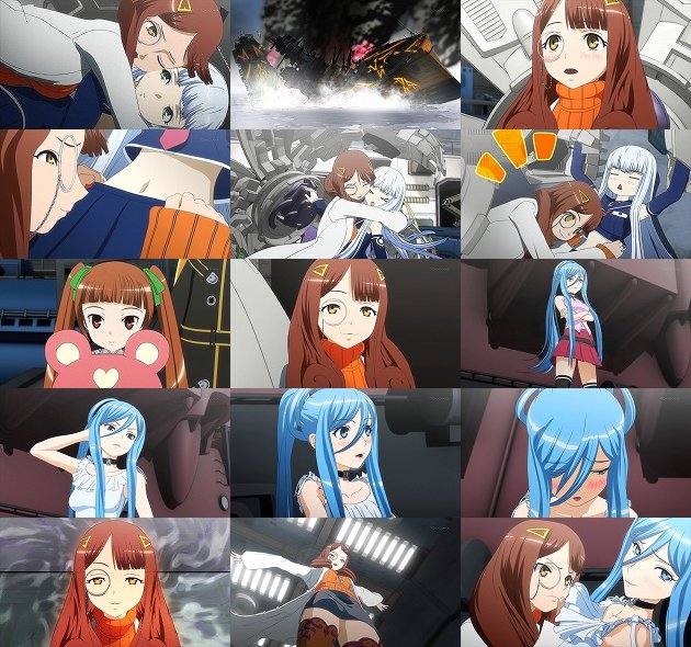 ヒュウガ、まさかの百合キャラw 1年前の戦いでイオナにフルボッコにされて以来、逆にイオナの事を「イオナ姉さま」と呼んですっかり惚れ込んでしまったようで・・・。 超重力砲を奪われ、船体も失ったヒュウガはユニオンコアのみの状態→卵状メカと姿を変え、今は片眼鏡の百合っ娘メンタルモデルにクラスチェンジ。まぁ実艦の『日向』も艦影がガラリと変わる程の大改装を数度経て、最後は世界に類を見ない航空戦艦になった艦ですし、そういう共通点は見い出せるかも。 そんなヒュウガにタカオの事を尋ねようとした群像ですが、ここで現れたタカオが自ら“イ401クルーに会うために先回りしてここを占拠していた”と述べ・・・まぁ反撃を受けて捕獲された事実はすぐにバレる訳ですがw そんなタカオに先回りしていた目的について問い質す群像。ここでヒュウガは先にタカオと打ち合わせをしていて、タカオが艦長(群像)を欲している事を知り、それをストレートに告げさせようとしていました。それによってタカオ=群像が繋がり、一人になったイオナは自分の物グヘヘ・・・というヒュウガの目論見は、乙女回路を実装したタカオの照れによる告白失敗で水泡に帰します。阿呆だなこの重巡と戦艦w