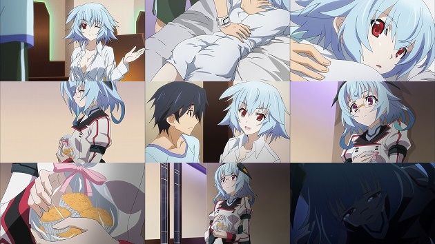 群像や蒔絵と接したタカオやハルナの変化に思いを馳せるコンゴウ・・・次々とお仲間が去り、今や友だちはカモメさんだけですかw ドッグでイ401の修復を行うヒュウガに今後の事を質すタカオ。硫黄島基地は放棄する予定なので、その後はイ401に乗り組む事を告げるヒュウガは、タカオにも同じ艦隊の一員となる事を提案。群像と共に在り続けるその選択に、頬を染めるタカオ・・・ほんとチョロいな。 優秀なメカニックとしてだけでなく、腕利きのコックとして料理を提供するヒュウガ・・・イオナの分だけ明らかに豪勢なのは仕様ですかw 蒔絵の薬まで生成してしまうその能力はまさに便利屋。艦隊に1隻はこういう艦が欲しいですな。