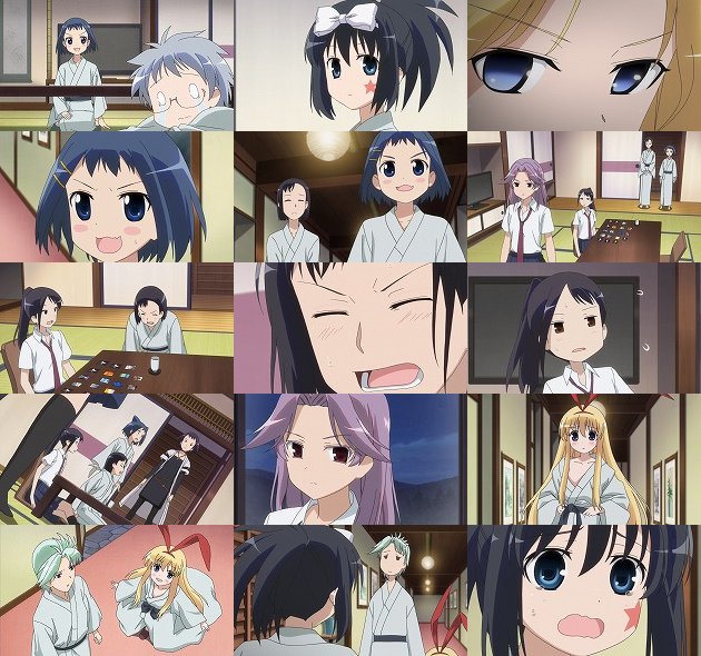 控え室のTVに繋いで、副会長から送られた映像を観始める清澄の面々。それは、地元の人たちからの心のこもった応援メッセージ集でした。これまでの3年間、たった1人で麻雀部を始め、多くの仲間たちに支えられてここまで来た事を感慨深く思う久さん。うん、やっぱこの人が背負っているものは清澄の誰よりも重いですな。 そんな久さんは、県大会の後に行われた四校合同強化合宿の日々を回想・・・以下、今回は最後までこの回想モードです。