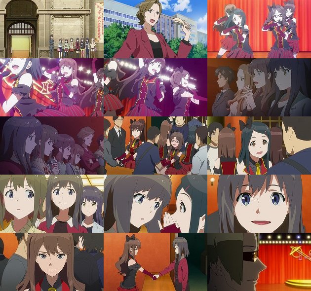 そして迎えるライブ当日。I-1クラブの公演は見事に満席なのに対し、WUGのライブに集まったのは僅か10人・・・それでも先述のTPDの第1回ダンスサミットや、μ’sの1stライブに比べればまだ集まったもんですw WUGはステージの内容も散々で、ダンス中の衝突、振付の間違い、噛み噛みなMCと練習の成果を全く発揮出来ないままライブを終えます。I-1クラブの全てが噛み合う完璧なステージとは好対照です。 しかしそんなWUGの1stライブを見守る謎の視線が2つ・・・本作のオトナの業界人はこれまでロクでもない奴らばかりだったので、不安しか思い浮かびませんがw