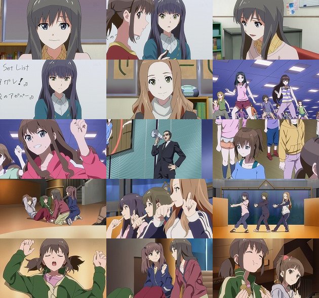 I-1クラブの仙台シアターこけら落としにはI-1でもエース級のメンバーが揃う事もあり、自信を失いがちなWUG。それでもまゆしぃが中心になってめげずに練習を行い、地道な宣伝活動を続けます。まぁ実際住んでいた私が言うんですけど、仙台なんて政令指定都市の割には繁華街は限られているので、ポイントさえ押さえればそれなりの宣伝は出来ると思うんですけどね。 WUGの練習の場に現れたTwinkle・・・実はこの人たちの活動も謎ですよね。売れっ子の割にはよく丹下社長のオンボロ事務所にも顔を出すし。まぁ中の人(戸松&花澤)は間違いなく売れっ子ですけど。 WUGの練習を観て、客観的な意見を出してダメ出しするTwinkle。それで落ち込むWUGを観て、互いに意見を出し合って時には喧嘩するくらいじゃなくてはダメだ、と先輩として指導するTwinkle。それを聴いて、まゆしぃに言いたい事があるのに胸の中に仕舞い込んでいる佳乃は、それでもなかなか自分から言葉には出来ず・・・