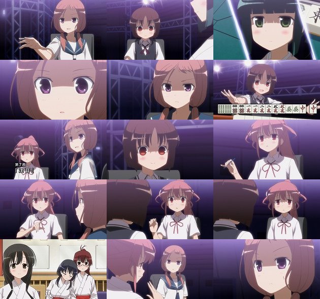 中堅戦後半戦に入ってようやく緊張が溶けて本来の打ち筋が見えて来た久さん。一方、久さんの復活を敏感に感じ取って、安手で流す策に出る永水女子の春と宮守女子の胡桃。更に胡桃は得意技のダマテンでの和了りを見せ・・・その聴牌の気配を消す術は、ステルスモモにも匹敵するようです。 しかしそれも姫松の洋榎には通用せず、春は5,200点を直撃されます。ここで自分の読みの鋭さと腕のをまくし立て、胡桃からまたも叱責されて洋榎がシュンとする様が可愛いですw 洋榎の腕を素直に評価する久さん。この強豪を相手に回し、久さんが感じたのは・・・
