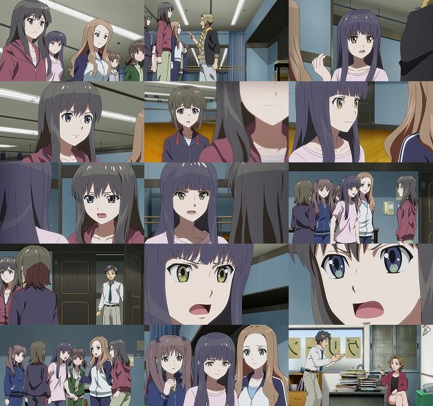 20点との評価に「頑張ってるのに・・・」とこぼした夏夜に、誰もが頑張っている!I-1は倍以上のレッスンしている、だから100倍頑張って1,000倍の結果を出さないといけない!と厳しく叱責する早坂。うん、製作陣は100倍、1,000倍とは言わないから、もう2〜3倍頑張って良い絵を描こうな! 早坂の言葉を受けて、もっと真剣に頑張らないといけないとメンバーを叱咤するまゆしぃ。焦り過ぎだと言うよっぴーに、またもI-1を引き合いに出してしまうまゆしぃに、ここでまたもよっぴーブチ切れ。まゆしぃがI-1に勝つために自分たちを巻き込むな!と・・・WUG内で口論が起きる時、必ずその片方はよっぴーのような気がするのは気のせいでしょうかね?どこにでもいますけどね、そういうタイプって。 この修羅場に現れた松田はオドオドするだけで何も出来ず、夏夜が両者の間に割って入って言い争いを止めます。この状況を改善する策として、合宿を提案する夏夜・・・松田本当にいらないな。今再放送やってる&劇場公開されてるけど、アイマスの赤羽Pとは雲泥の差です。