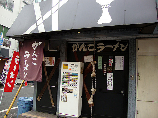秋葉原・・・と言うより、末広町駅前の立地。中央通りと蔵前橋通りの交差点近くに昔からある(少なくとも私がアキバに通い始めた90年代半ばからあったはず)、謎の黒い看板と吊るされた骨。ここが『元祖一条流がんこラーメン』です。