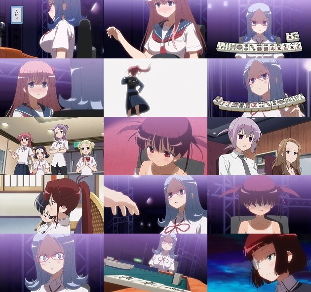 火蓋が切られる大将戦。いつものように明槓からの嶺上開花を狙う咲ですが、それを読んでか先手先手を打って鳴きに出る恭子。結果、細かい稼ぎながら三連続和了で前半戦東局を駆け抜け・・・まぁ点数は幾らか差のあるトップ、しかも相手の3人はいつ牙を剥くか分からない能力者揃いとあれば、この小刻みな早和了りは正しい戦略と言えるかと。