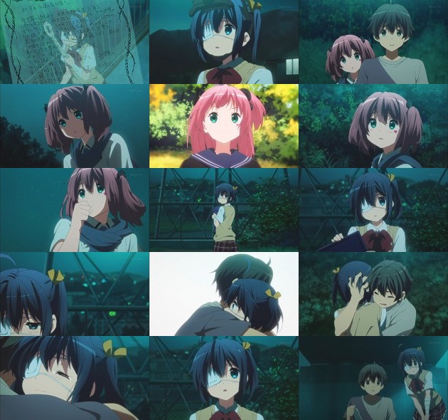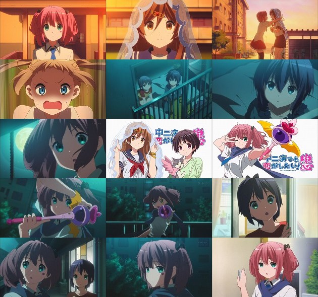 以前偽物と戦った時に知った事。過去と戦う時、その相手は自分の中にいる・・・それを伝えたかったモリサマ。その助言に答えを導き出せた智音は喜び、モリサマに感謝の鼻チョン・・・それを観ていた凸守は、モリサマまでも手に掛けるつもりかと智音に怒りの突撃・・・やっぱモリサマの事が好きなんだな、凸守w その日の夜はブルームーン・・・「月は出ているか」と樟葉に問う六花です(NGワード:ガンダムX)。 ベランダで六花・智音との三角関係に思い悩む勇太ですが、そこに上階からロープを伝って現れる智音(毎度ながらパンツ絶対観えるよなこれ)。自分が戦うべき相手は勇太と結論付けた智音は、勇太に宣戦布告(なぜだーw)。しかしそこに樟葉が現れ、まだ病身の六花が部屋から姿を消したと告げます。 今日がブルームーンである事を知る智音は、六花が何をしに行ったのか理解します。中二病は中二病を知る、ですな。