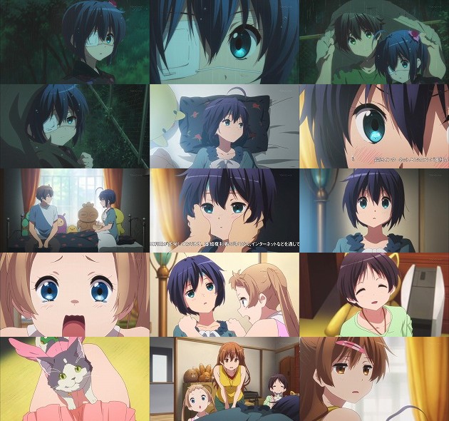 智音の想いにようやく気付きながら、それでも雨の中で待っている六花の方を選んだ勇太。よし、そこで選択肢は間違えなかったな。 結局勇太に貰った傘を装備せずに来ていた六花は浴衣姿のままずぶ濡れで、その結果風邪を引いてしまう事に。勇太の看病を受けながらも深夜の外出を続けようとする六花・・・ちなみにこれ観てる時にMc.さんも風邪で熱出してて、ちょっと六花にリンクしてたり(おでこの冷えピタとか)。 翌日、六花の見舞いに来た凸守・モリサマ・くみん先輩・・・「このような変わり果てた姿に」って、六花死んでねーよ凸守w あとキメラちょっとそのポジション代われ。