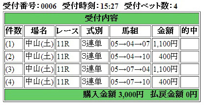 馬券は・・・買っていなかったアドマイヤトライが先頭集団に残っていて「ヤバいなー」と思ってたら、最後から2番目の障害でバランスを崩して大きく後退。最終障害を超えた時点でアポロマーベリック→メイショウブシドウ→オースミムーンの順番になって「しめしめ♪」と思ってたら、最後の直線200mであれよあれよとオースミムーンが爆沈し、人気薄のコスモソユーズが一気に差してくるという番狂わせでハズレ。中山実績のあるシャイニーブラックは押さえていただけに、コスモソユーズのまさかの好走が無ければ・・・という一戦でした。