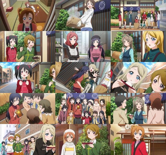 穂乃果は最終予選の日に学校の皆に助けてもらったお礼にと、餅つき大会を開催して餅を皆に振る舞う事に。まぁ家業を活かした粋な計らいと言えなくもないかも。但し花陽と希は餅1個までな! モブライブの皆さんと和気藹々とした時間を楽しんだ穂乃果は、ここでキャッチコピーが浮かびそうになりながらもう一息で浮かばず。なかなかに難産です。