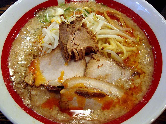 スープは以前と変わらず醤油豚骨に背脂たっぷりのこってり濃厚。麺は中太やや縮れ麺で、コシがあってスープに負けていません。野菜は少なめですかね。チャーシューは柔らかく煮込まれた豚もも肉で、これにラー油を一回しかけてズルズルーッ。うん、やっぱ美味いなー、ここは。体調悪い時に食うと高確率で下痢するほど濃厚なスープも、健康体には全身に染みわたる活性剤です。