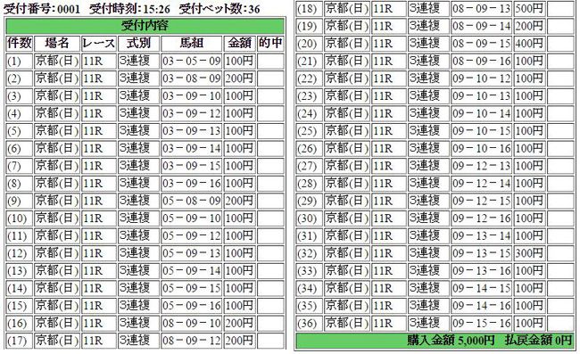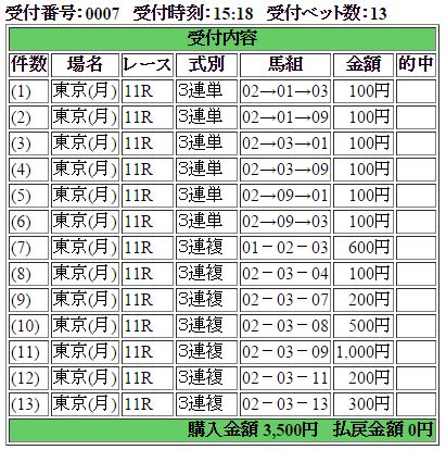 馬券は・・・相手で1着〜4着馬を押さえているものの、軸馬8着でドボン。先週のエリ女と同じ馬券戦法で挑んだものの、二匹目のドジョウはいませんでした。