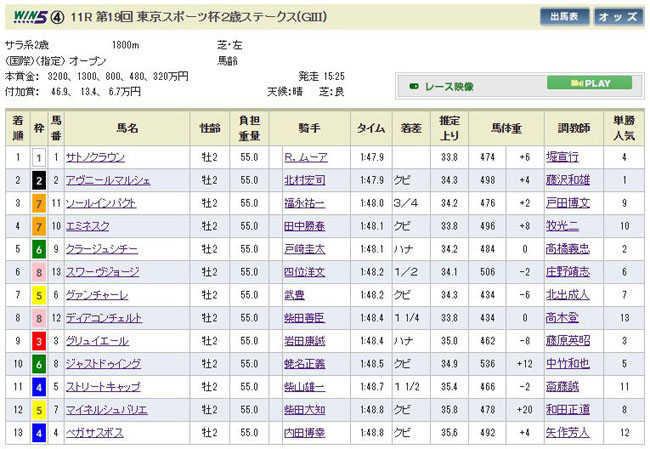 5着:エキストラエンド。ここでようやく外人騎手。今回は外人いらない番だったか。