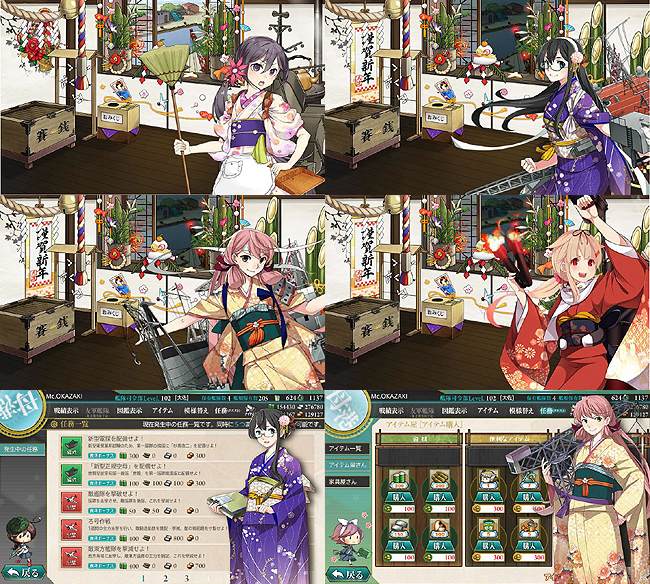 そして正月を挟んで期間限定の晴れ着艦娘たちが実装されました。家でダラダラしてると箒で尻を引っ叩かれそうな曙、晴れ着を着てもグーパンを構える大淀、晴れ着が絶対作業の邪魔になりそうな明石、そして新年早々危ない花火を振り回す夕立・・・鎮守府の正月は一波乱も二波乱もありそうですw