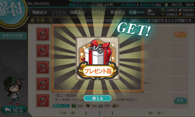 それでも報酬には嬉しいプレゼント箱が含まれていたり。クリスマス出撃時には結局引き当てられなかったので、実は初めてのプレゼント箱です。