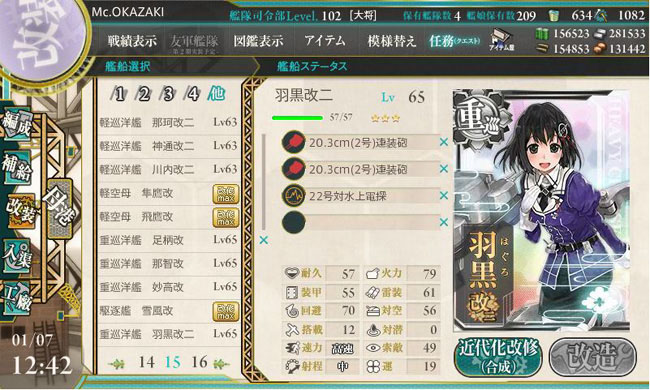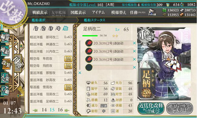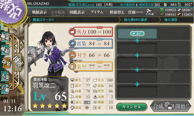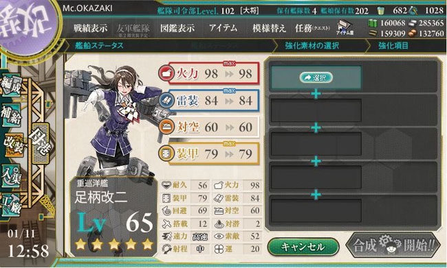 そしてちまちまとレベリングを行って来た妙高型重巡が続々とLv.65に達して、早い艦は改二改造を迎えています。