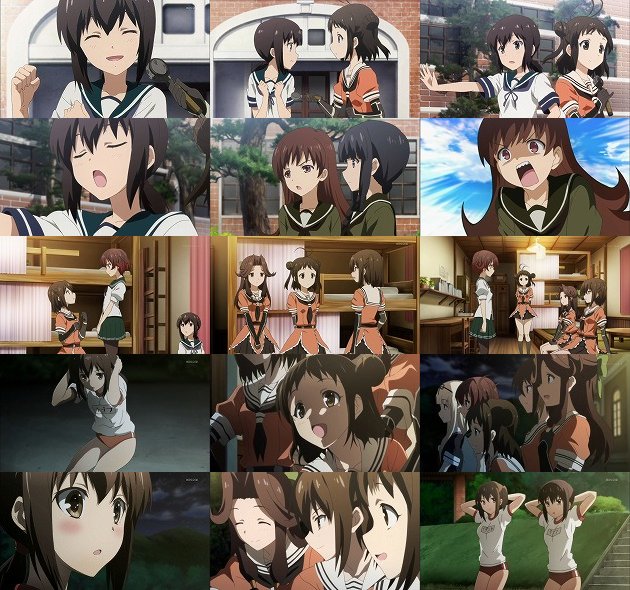 微妙なパンチラから始まる今回の艦これ。早朝トレーニングに出掛ける吹雪と、謎の夜戦帰りの川内・・・授業にはちゃんと出ているようだし、川内がいつ寝ているのかが謎ですな。 今回から実装されたOPはアクエリオンでお馴染みのAKINOさんが唄ってます。多くの艦娘が登場する動きのある良いOPですが・・・逆にここに登場しない艦娘は今回のアニメでは出番が無いのか、自分の嫁艦が出ていない提督たちは気を揉んでいるんじゃないでしょうか(自分の場合、瑞鶴・大淀・利根を確認したので満足)。 クラス分けは文字通り艦のクラス分けになっているようで、吹雪は当然駆逐艦クラスの生徒。ただ、このクラスには吹雪の他は睦月・夕立・如月・暁・響・雷・電・島風しかいないようで・・・別の駆逐艦の艦娘をモブで確認しているので、他のクラスも存在するようです。