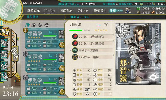 さて・・・羽黒・足柄・妙高と立て続けに妙高型の改二改造が終了しましたが、次女の那智だけまだ改二が実装されていません。それでもようやく今週末のアプデで那智の改二が来るようですし、ここで金剛型に続いて四姉妹揃い踏みで改二艦が並ぶ姿が見られるようです。
