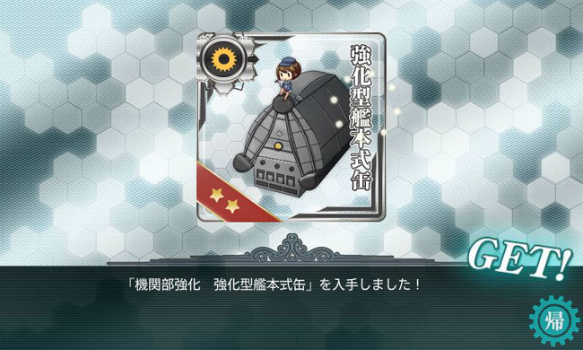 この強化型艦本式缶は回避が+10上がる優れ物。装備するのはやはり被弾すると大破率が高い駆逐艦ですかね。当たらなければどうと言う事はない!