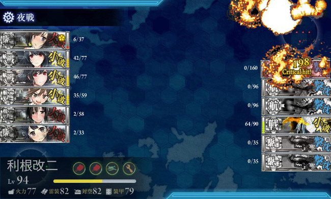 いざ出撃してみるとこれが大正解!特に防空駆逐艦の秋月が対空カットインを出しまくってバッタバッタと敵機を落としまくり!!この娘、本当に入手しておいて良かったです。