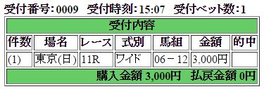 フローラステークス(府中芝2000m、3歳牝馬限定GU) さて、こちらは本番のオークスにも直結する事で知られるオークストライアル。まぁ最も信頼出来る前哨戦(?)は桜花賞な訳ですが・・・今年の桜花賞はペースが特殊過ぎて、あまり参考にならないからなぁ。ルージュバック他、桜花賞で人気を背負って負けた組がリベンジして来そうな気がしますけどね。 ちなみにこのフローラSには「このレースを勝つとその後勝てなくなる」という不思議なジンクスが近年囁かれてまして。5年前の優勝馬のサンテミリオンこそ直後のオークスでも優勝したものの(アパパネと同着)、オークス後は1回も馬券に絡む事すら出来ず。その後の歴代優勝馬はバウンシーチューン・ミッドサマーフェア・デニムアンドルビー・サングレアルと、このレースの後に1頭も勝利出来ていないと言う・・・。 さて、今年のメンバーは3歳牝馬の有力どころの殆どが桜花賞に出走したため、こちらは微妙な裏街道組。しかもその裏街道で「善戦した」馬たちばかりが揃い、格としては桜花賞組からは2枚も3枚も落ちるメンバー構成。どの馬もこのレースの1・2着に与えられる優先出走権が無ければ賞金的に桜花賞には出れず、逆に言えばどの馬が勝っても不思議はないかな、と。 なのでここは思い切って馬券は1番人気のディアマイダーリン(フラワーカップ3着・横山典弘騎手)と、4番人気のフロレットアレ−(ミモザ賞2着・田辺裕信騎手)のワイド1点で勝負。配当も5倍くらい付きます。2番人気のシングウィズジョイは府中コースに良績無く、3番人気のマキシマムドパリは馬体重-18kgが嫌過ぎますし。 結果・・・