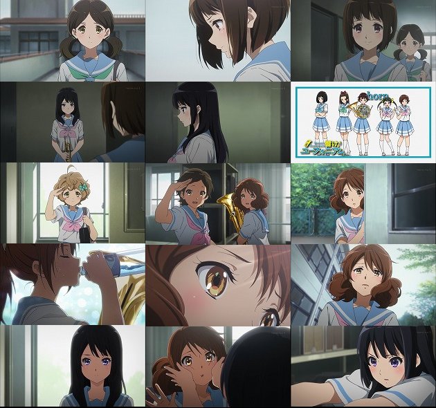 トランペットのエースでありながら練習に身が入る香織先輩。晴香先輩には言いませんが、その向上心に火を点けている存在がいるようで・・・それが新星のごとく現れた1年生の麗奈である事は直後の描写で分かりますね。 そして迎えたオーディション当日。部員の多くは自ら朝早くから登校して最後の詰めを行っているようで。そんな中、これまでのやる気の無さが嘘のように懸命に練習に励む夏紀の姿を観た久美子は、自分が先輩たちと戦うという現実に改めて気付いて戸惑いを見せます。そんな久美子の様子に気付いて、互いに全力で戦う事を誓わせる麗奈・・・やっぱ久美子の嫁は麗奈だよな。塚本なんて(゚听)イラネですよね。