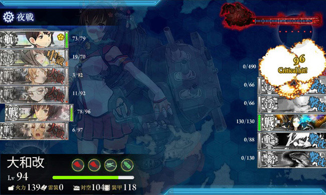 それでも大和の最後の攻撃が港湾棲姫ではなく、無傷の戦艦ル級改flagshipの方に向かっていたら・・・まさに薄氷の勝利でした。