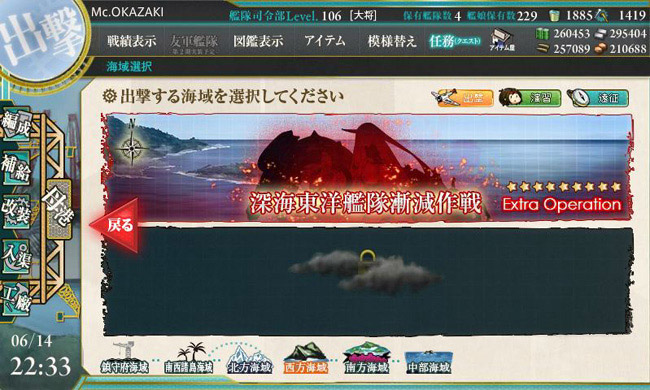 さて、先週金曜日のアプデではサプライズで海域4-5が実装されました。春イベで撃滅した東洋艦隊が再び蠢動を始めた・・・という西方海域が部隊の作戦です。ボスは港湾棲姫・・・また三式弾の出番ですな。
