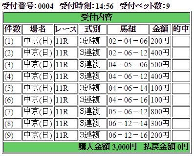 馬券はフラアンジェリコ1頭軸から他の馬へ総流しの三連複。結果・・・