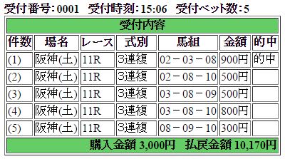 馬券は三連複で。相手は人気通りナムラビクターとアウォーディー、ランウェイワルツとマルカプレジオでいいかな、と。人気馬の組み合わせなので買い目は絞ります。