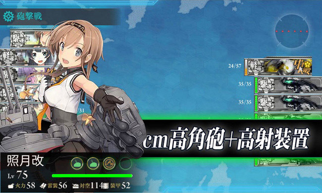 その前にいつも最後に残る1-6の攻略から。五十鈴の防空巡洋艦化と照月の実装によってかなり楽になった海域です。それでも7周もするとさすがに疲労やカスダメの蓄積によってメンバー交代も已む無くなるので、防空能力の高い軽巡・駆逐艦は揃えておかないとダメですね。