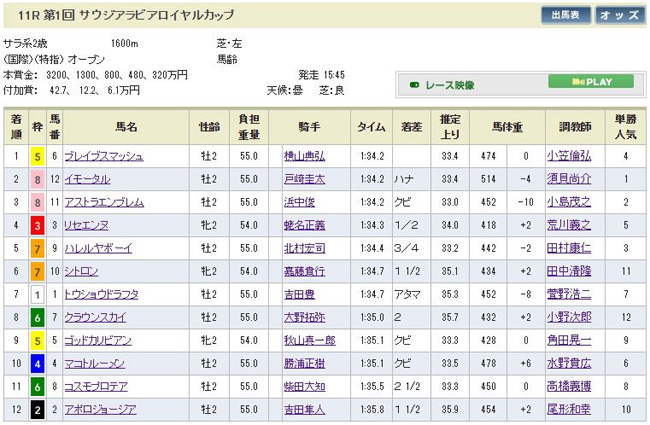 サウジアラビアロイヤルカップって言うから、富士ステークスって今月だったっけ?と思ってたら、いちょうステークスから化けた2歳馬の新設重賞だったのね。しかもどっちも同じ府中芝1600m。ややこしや〜ややこしや。