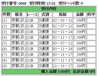 ◯は素直にリアファル(外枠と、今回は完全に目標にされる展開がやや不安)、▲もダービー2着のサトノラーゼンで良いかな、と。以下、長距離特性が高そうなタンタアレグリア、菊花賞では裏人気になる夏の長距離戦で連勝して来たスティーグリッツ、母系の血統が菊花賞に強そうなメジロ軍団で占められているマッサビエルまでを流し相手。人気馬から入るので買い目はあまり増やせません。