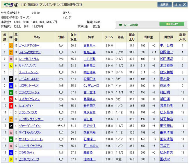 アルゼンチン共和国杯(府中芝2500m、GU)
