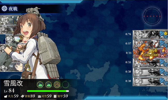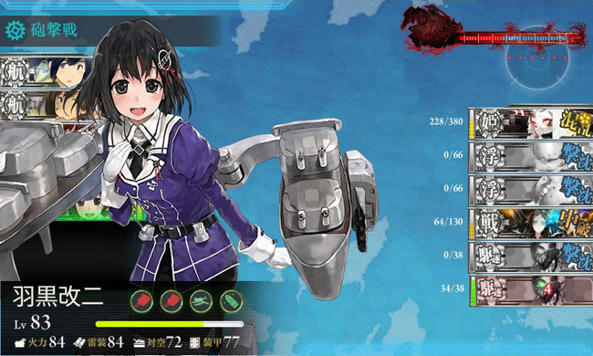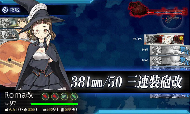 削り段階では戦艦1・空母2・重巡2・雷巡1のエコ編成で出撃。ボスマスにさえ到達してしまえば、三式弾の特効で難無く突破出来るのですが・・・