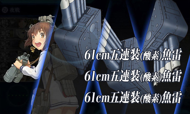 まぁ先述の通りの装備で6回成功させれば海域突破というのがセオリーのようですけどね。特に夜戦における魚雷カットインがS勝利の必須攻撃となるので、魚雷を満載した運の高い駆逐艦に祈りましょう。コロンバンガラメンバーの雪風は当然として、他は綾波・潮・時雨辺りがお奨めですかね。ちなみに道中は回避重視で複縦陣が宜しいかと。