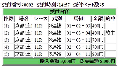 5着:サウンズオブアース。やはり京都コースでなんぼの馬かな?次は日経新春杯で会いましょう。