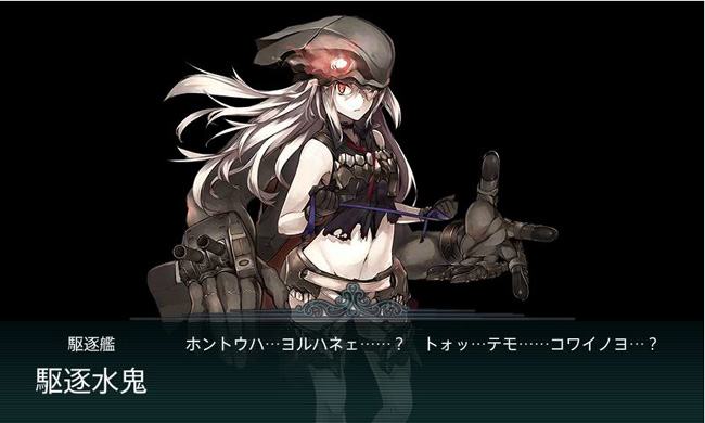 ボスは今イベント初登場の駆逐水鬼。勿論その名前に偽り有りで、耐久力も火力も並みの戦艦以上を誇る強敵。しかも最初に輸送ゲージを破壊した上で戦闘ゲージを破壊しなければいけないので、かなりの回数の出撃を強いられます。