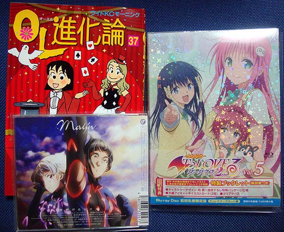 BDは『To LOVEる-とらぶる-ダークネス2nd』の第5巻。今月は4巻に続いてのリリースとなっています。CD-Sは『アクエリオンロゴス』の後期OP/ED、コミックは毎年年末に発売される『OL進化論』の37巻。ちなみに『アクエリオンロゴス』後期OP/EDはアーティスト(May'nさん)の生写真付きです。
