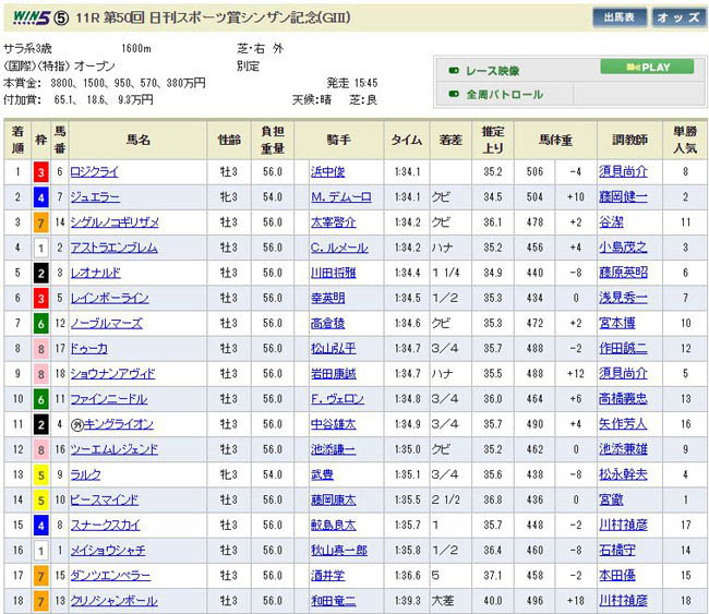 シゲルノコギリザメは師匠のanka2氏の本命だったんですが、1150mや1200mでしか実績のない逃げ馬が、1600mの重賞で残れる筈が・・・と思っていたらこれですから、さすがの馬相眼と言いますか。それにしても、人気のディープインパクト産駒は13着・14着と揃って大惨敗・・・本当、今年はセオリーが全く通じません。