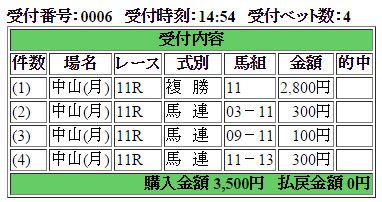 馬券はこの馬の複勝(!)をメインに、馬連で3点ほど流します。何しろ荒れるレースなので、三連複とか絶対当たる気しませんしw