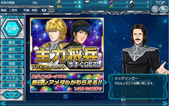 早速ログインし、帝国軍でプレイ開始・・・お、初期秘書官はメックリンガー提督ですか。一時的にラインハルトの参謀も務めていた人物ですからね。違和感はありません。