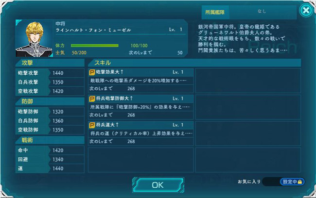 能力は勿論、ヤンに次ぐ最高値。これまでヤンを艦隊指揮官にして来ましたが、ここでラインハルトに交代です。一応帝国軍でプレイしていますしねw